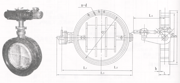 電液動蝶閥以電液推桿作動力源,通過雙向齒輪泵輪出壓力油,經(jīng)油路集成塊的控制送至油缸,實現(xiàn)活塞桿往復運動,同時通過曲柄轉(zhuǎn)動閥軸、閥板作90°范圍旋轉(zhuǎn),達到調(diào)節(jié)流量的目的。